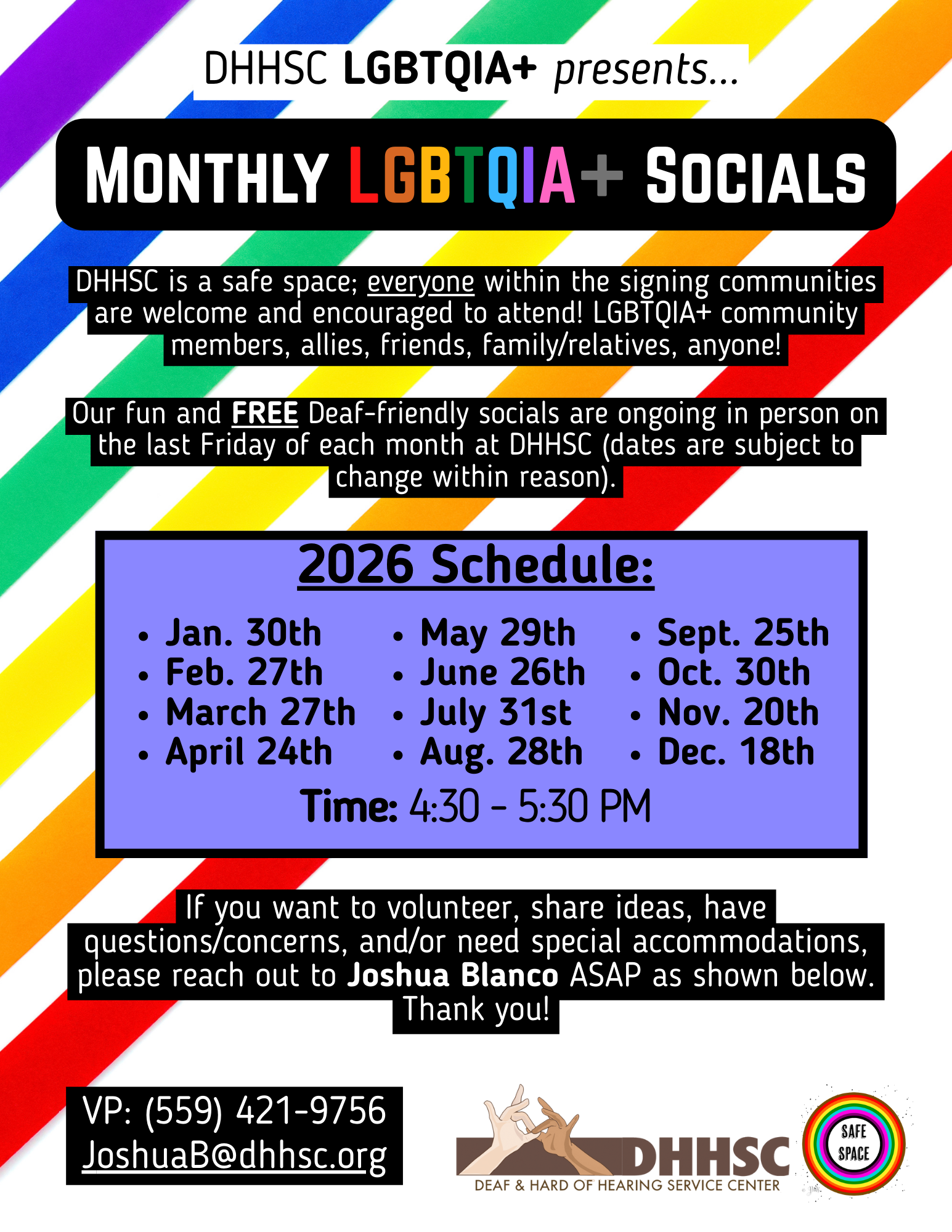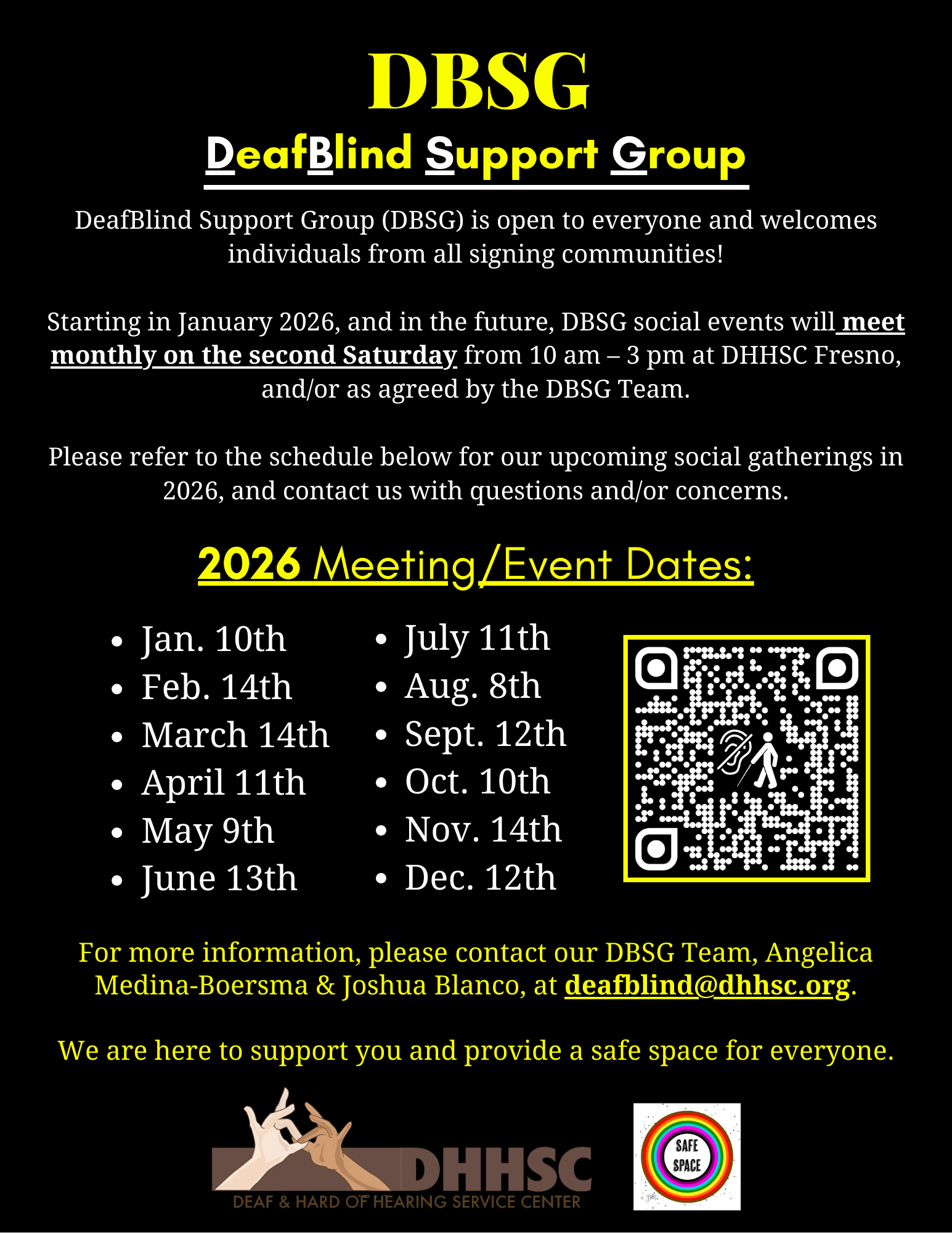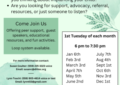 FRESNO EVENTS Events are covered in Fresno County that you can check it out below by clicking to view bigger. PDF formats available to download. Some events have videos with transcripts included, which you can watch here on Facebook, Instagram, or YouTube. ONGOING EVENTS (ENGLISH PDF) (ENGLISH PDF) (WEBSITE) (ENGLISH PDF) What Did You Say Cochlear Implant Support Group DeafBlind Support Group 2026 Monthly LGBTQIA+ Social UPCOMING EVENTS (ENGLISH PDF) January 2025 WFC Workshop