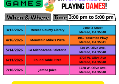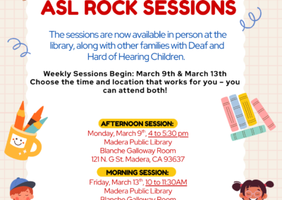 MERCED EVENTS Events are covered in Merced, Madera, & Mariposa Counties that you can check it out below by clicking to view bigger. PDF formats available to download. Some events have videos with transcripts included, which you can watch here on Facebook, Instagram, or YouTube. ONGOING EVENTS (ENGLISH PDF) (PDF ENGLISH) Merced ASL Games Merced Dinner Out Monthly UPCOMING EVENTS (ENGLISH-SPANISH PDF) (ENGLISH-SPANISH PDF) (SPANISH PIC) (SPANISH PIC) ROCK Sessions (Madera) ROCK Sessions (Merced)